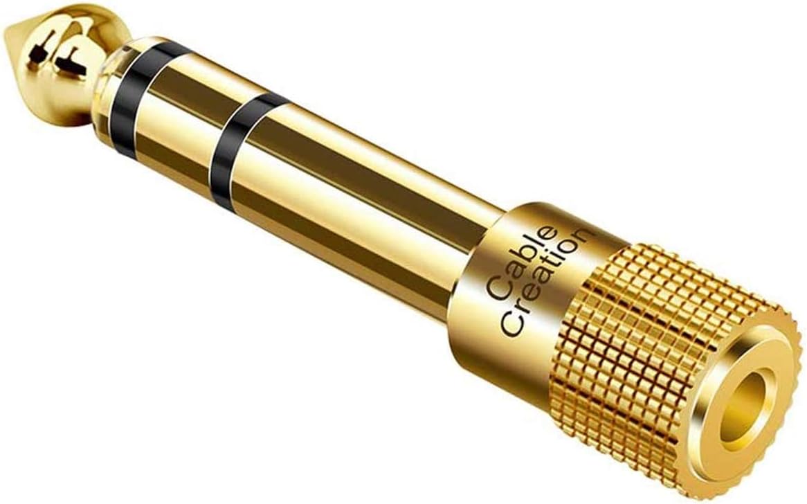 Amazon Com Cablecreation 6 35mm Stereo Plug To 3 5mm Stereo Jack Adaptor 6 35mm Male To 3 5mm Female Gold Plated Musical Instruments